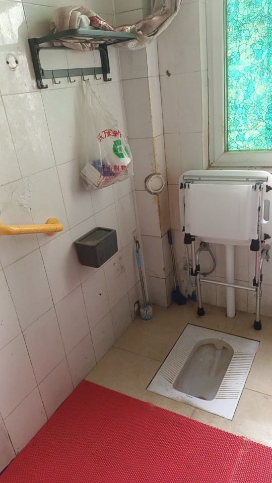 椿萱堂养老服务中心开展适老化改造,蹬便器改成带扶手的折叠式坐便器,安装起身拉手,过道扶手,马桶扶手,坐浴凳子,卫生间pvc镂空防滑地垫,厨卫地面防滑剂处理,改装无线双控床头开关!